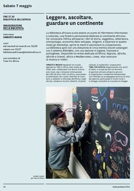 7 maggio ore 17,30 Inauguriamo la Biblioteca dell'Africa