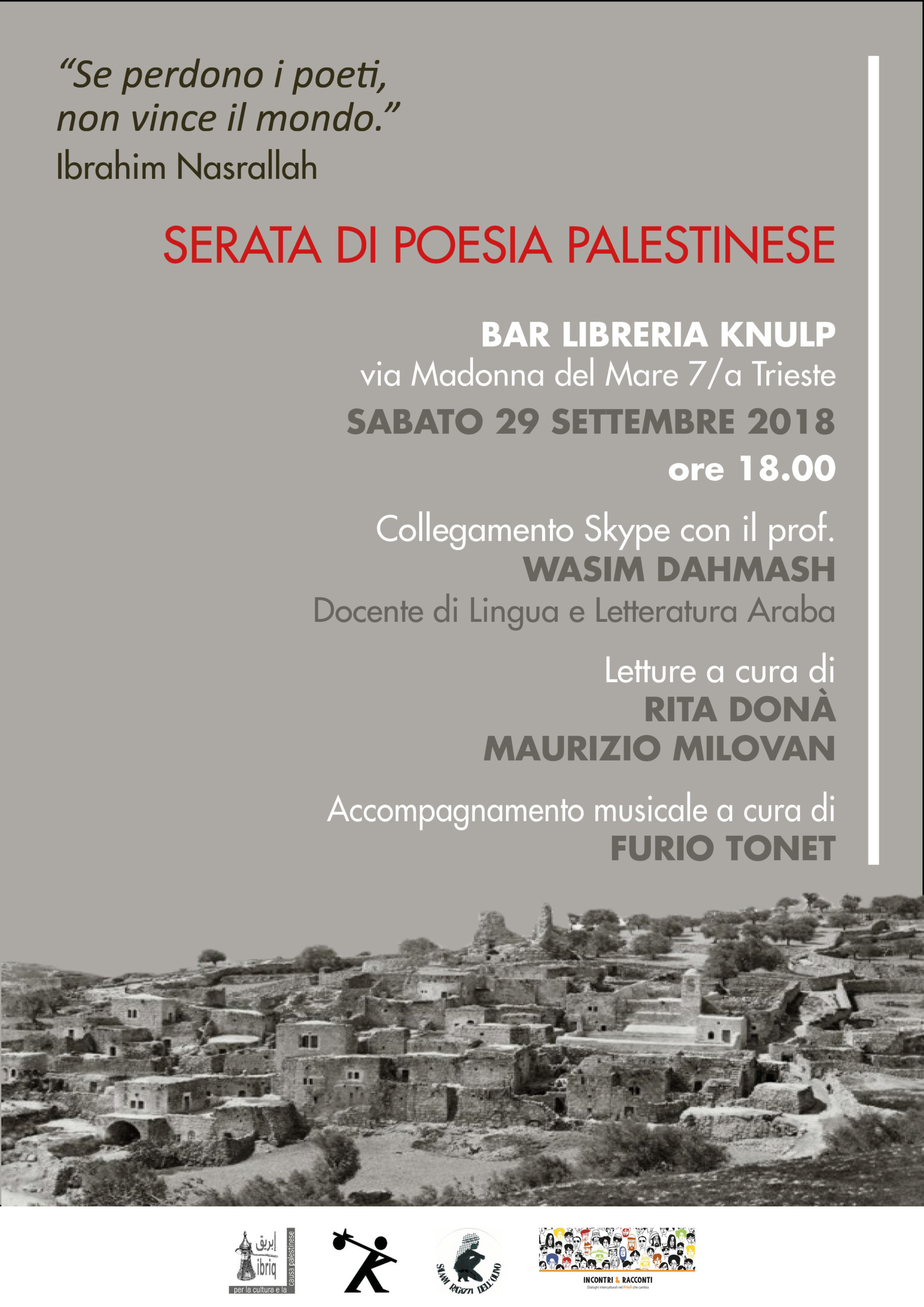 Sabato 29 con inizio alle ore 18,00 a Trieste al Bar libreria Knulp, in via Madonna del Mare 7/a SERATA DI POESIA PALESTINESE