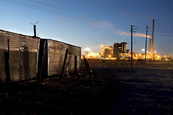 La fonderia Lonmin si erge come una cattedrale su un paesaggio brullo, il suo camino raggiunge il cielo, il suo nastro trasportatore mischia una fortuna in platino grezzo. I minatori vivono nella sua ombra. Le loro case sono baracche, monovani. Alcuni di essi sono costruiti in blocchi di sabbia cemento ; la maggior parte sono patchwork di ferro arrugginito ondulato appiccicato ai telai di legname strappati dagli alberi locali. Le baracche si stringono insieme in gruppi di diverse centinaia. Non ci sono strade, solo sentieri di terra che si trasformano in grasso sotto la pioggia. Alcuni polli beccano nel fango mentre le capre passeggiano alla ricerca di qualcosa da brucare.