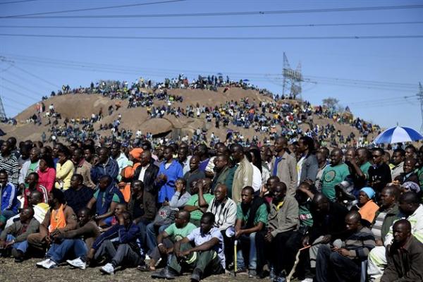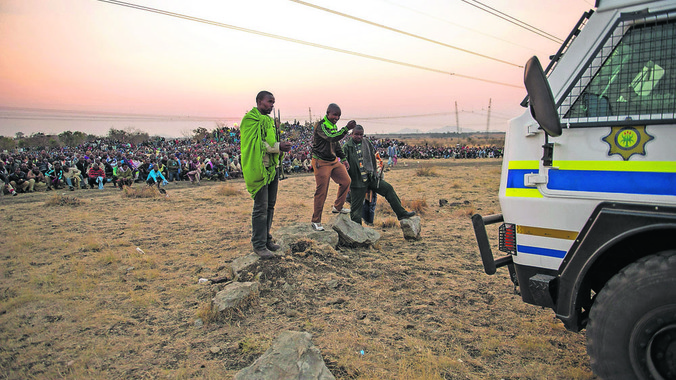 Alle 15:30 il leader Amcu è tornato al koppie parlando agli scioperanti con passione, per cadere, a un certo punto, in ginocchio: “Compagni, la vita di una persona di colore in Africa è così a buon mercato … Ci uccideranno, finiranno noi e poi lo saremo sostituiti con altri che continueranno ad essere pagati con stipendi che e che non possono cambiare la vita delle persone nere. Ciò significherebbe la sconfitta per noi e la vittoria per i capitalisti. Ma abbiamo un altro modo. Vi esortiamo – fratelli, sorelle, uomini – sto in ginocchio – venendo a voi come nulla. Smettiamola con questo spargimento di sangue che il NUM ha permesso a questo datore di lavoro . Non vogliamo spargimenti di sangue! “