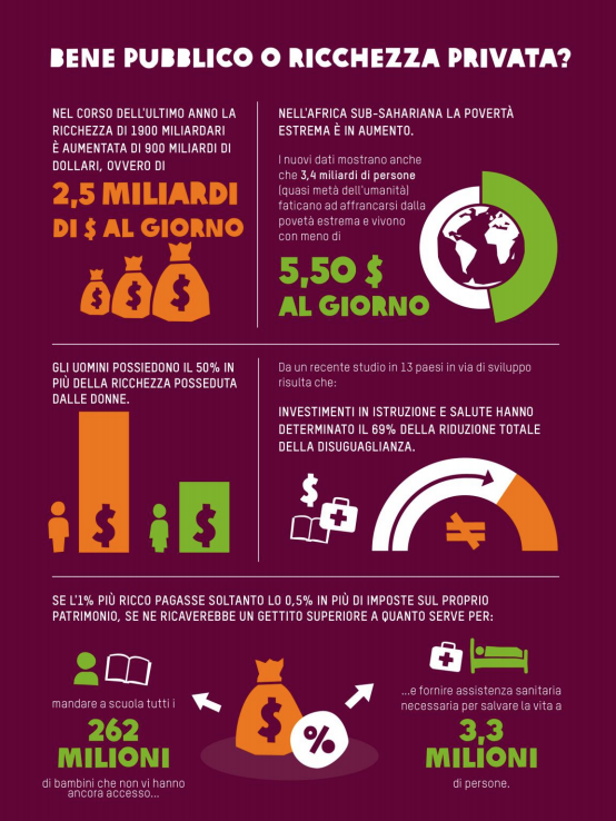 Oxfam Italia infatti ha tradotto il rapporto con il titolo “Bene pubblico o ricchezza privata?”