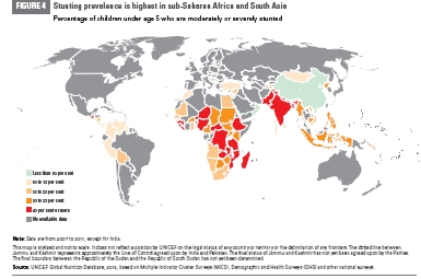 L’arresto della crescita del bambino provocato dalla malnutrizione e dalla denutrizione, riduce le sue speranze di sopravvivenza, ostacola in modo irreversibile il processo di crescita ottimale e in salute. L’arresto della crescita è associato allo sviluppo non ottimale del cervello con conseguenze negative e dannose per la capacità cognitiva, rendimento scolastico e dunque per un futuro incerto. Tutto questo poi influisce anche sullo sviluppo potenziale della nazioni che registrano elevati tassi di malnutrizione.