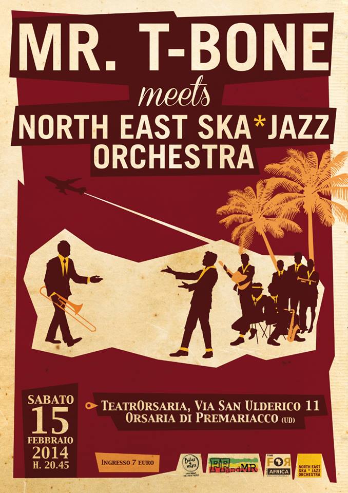 Concerto della North East Ska Jazz Orchestra che collabora con Time For Africa nell’attività di sensibilizzazione e sostegno ai progetti di sviluppo locale in Mozambico, Togo, Costa d’Avorio. Tra le altre iniziative e per valorizzare la presenza di Mr.T-Bone, la registrazione di alcuni brani e un video che saranno anche utilizzati per lanciare il progetto Musica con l’Africa.