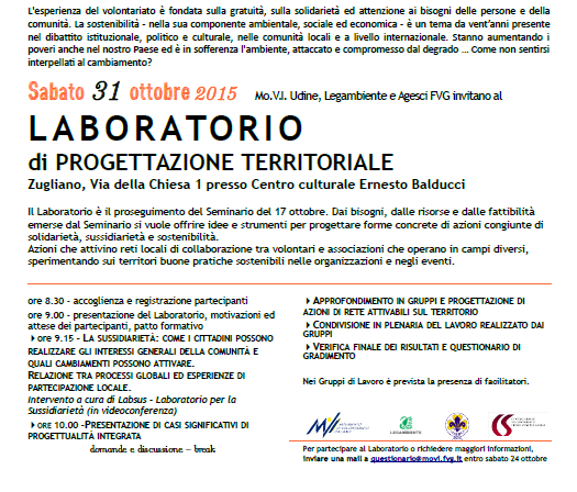 Interessante e utile iniziativa promossa dal MOVI, Legambiente e Agesci FVG per favorire una visione integrata che coniughi e integri solidarietà,sussidiarietà e sostenibilità ambientale.