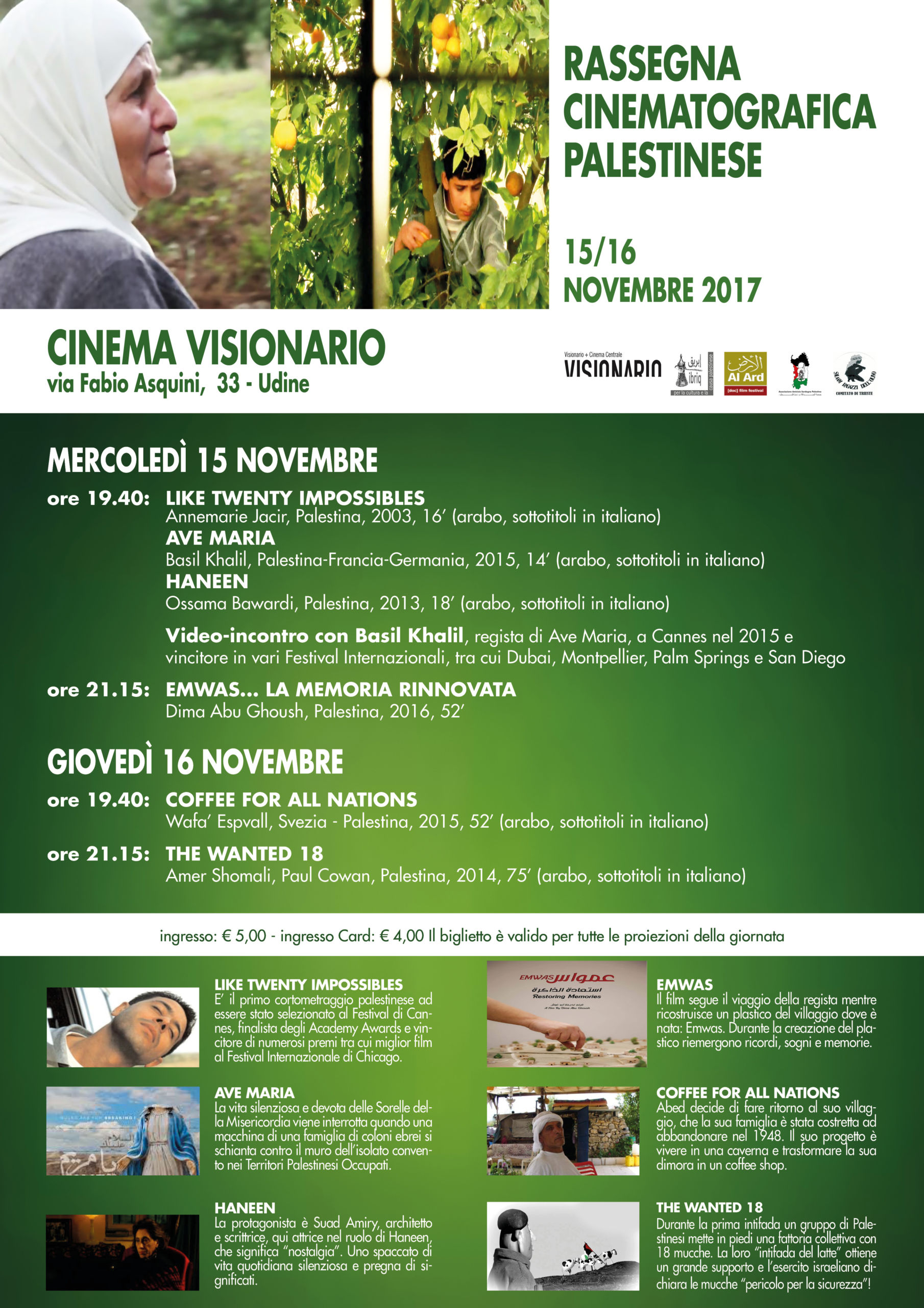 Mercoledì 15 e giovedì 16 novembre il Cinema Visionario ospita per il secondo anno consecutivo la Rassegna di Cinema Palestinese.