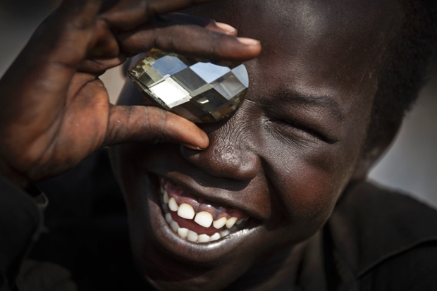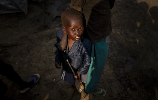 Un giovane ragazzo al compound delle Nazioni Unite che รจ diventata la patria di migliaia di sfollati dai combattimenti recente, nella capitale Juba.