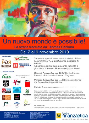 Ne parleremo nel corso del ciclo d’incontri che si terranno a Udine tra il 7 e il 9 novembre, prendendo spunto dall’eredità di Thomas Sankara che il giornalista e regista Silvestro Montanaro, ha raccontato nel docufilm “.. e quel giorno uccisero la felicità”, che sarà presente in sala.